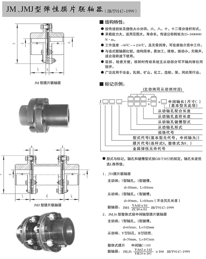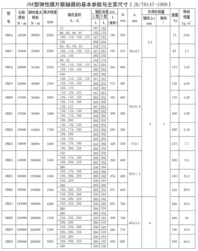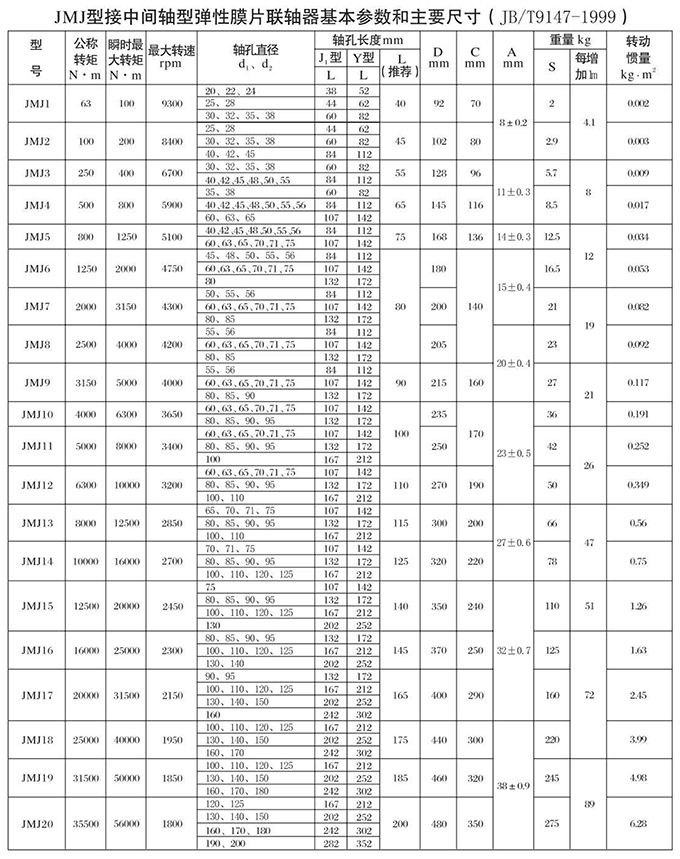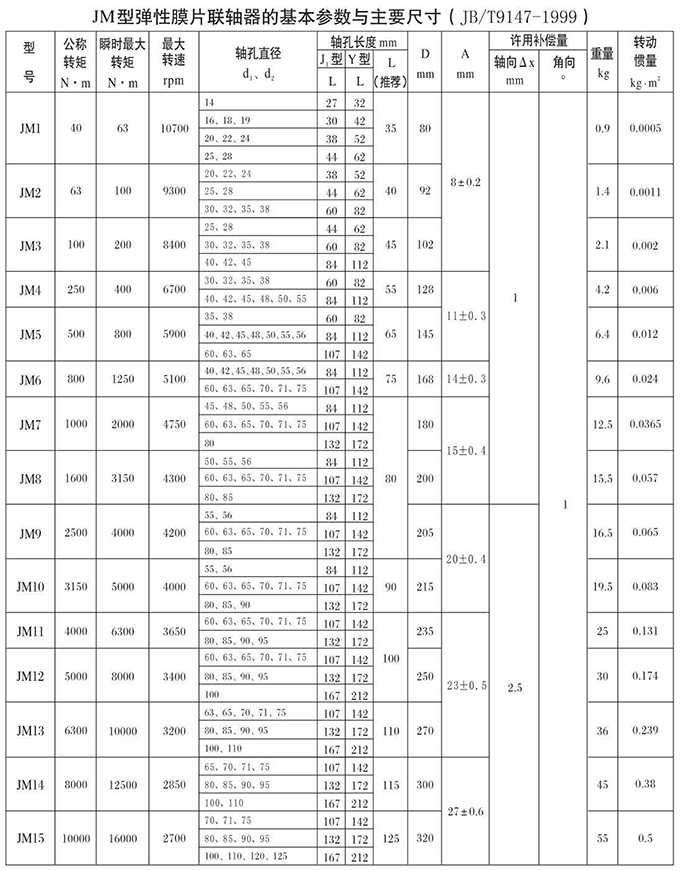 瑞安市寶德隆機(jī)械配件有限公司提供JM、JMJ型彈性膜片聯(lián)軸器具有拆裝方便,快速安裝等特點,廣泛用于連接/固定輪轂孔和零件的軸,例如齒輪,錐齒輪,鏈輪,葉輪,凸輪,皮帶輪和飛輪等軸的聯(lián)結(jié)固定,咨詢電話:18906872378