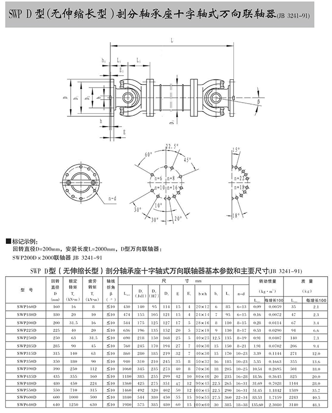 瑞安市寶德隆機(jī)械配件有限公司提供SWP D型(無(wú)伸縮長(zhǎng)型)部分軸承座十字軸式萬(wàn)向聯(lián)軸器具有拆裝方便,快速安裝等特點(diǎn),廣泛用于連接/固定輪轂孔和零件的軸,例如齒輪,錐齒輪,鏈輪,葉輪,凸輪,皮帶輪和飛輪等軸的聯(lián)結(jié)固定,咨詢電話:18906872378