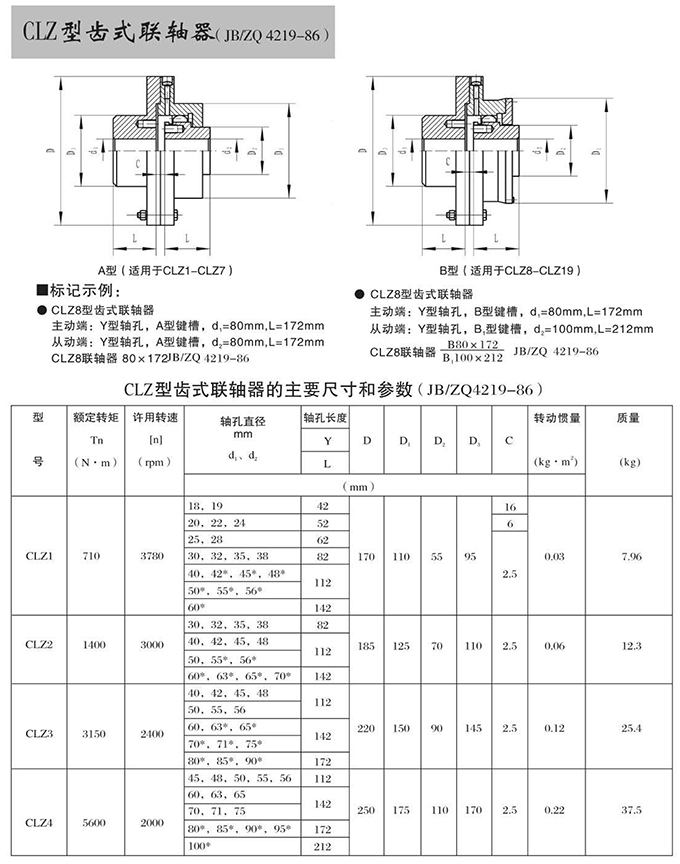 瑞安市寶德隆機械配件有限公司提供CLZ型齒式聯(lián)軸器具有拆裝方便,快速安裝等特點,廣泛用于連接/固定輪轂孔和零件的軸,例如齒輪,錐齒輪,鏈輪,葉輪,凸輪,皮帶輪和飛輪等軸的聯(lián)結(jié)固定,咨詢電話:18906872378