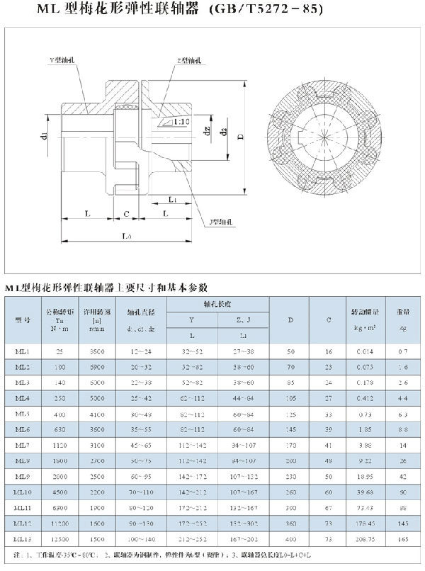 ML1梅花彈性蛇形聯(lián)軸器主要由兩個帶凸齒密切嚙合并承受徑向擠壓以傳遞扭矩,當(dāng)兩軸線有相對偏移時(shí),彈性元件發(fā)生相應(yīng)的彈性變形,起到自動補(bǔ)償作用。 ML1梅花蛇形聯(lián)軸器主要適用于起動頻繁、正反轉(zhuǎn)、中高速、中等扭矩和要求高可靠性的工作場合,工作環(huán)境溫度-35℃~+80℃,傳遞公稱扭矩25~12500Nm,許用轉(zhuǎn)速1500~15300r/min。